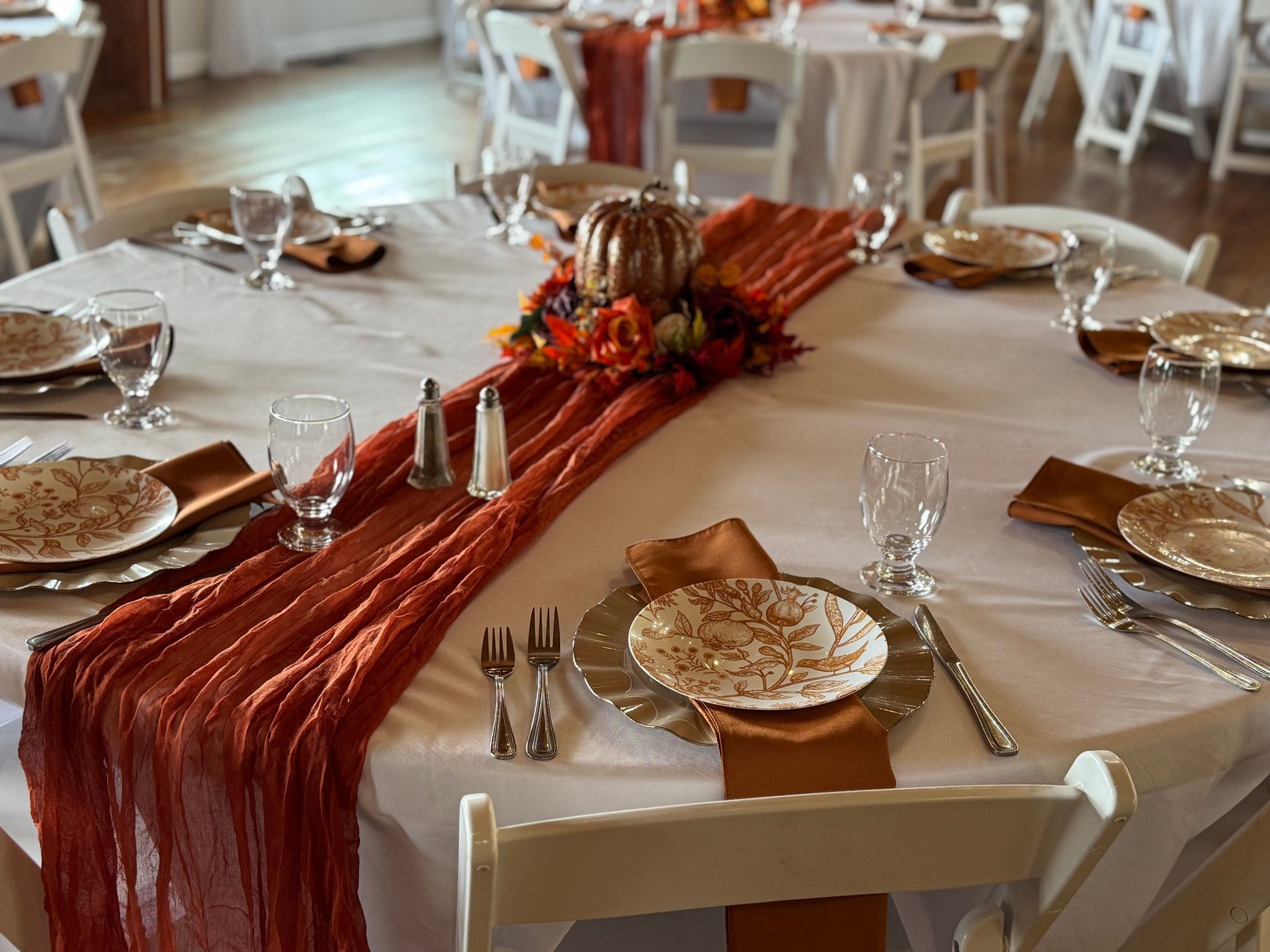 Our dining and event round tables are able to accommodate up to 10 guests per table. Construct your floor plan and our team will gleefully make it happen!